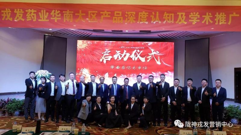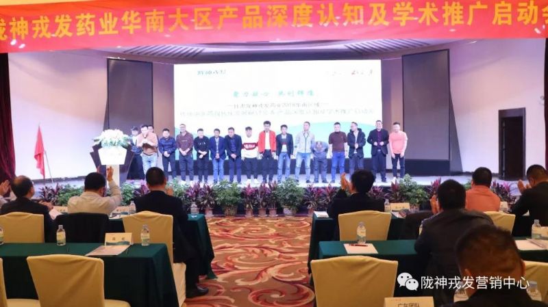作為此次會議的壓軸環(huán)節(jié),隴神戎發(fā)營銷總監(jiān)蘇海龍先生上臺表明了2019年華南大區(qū)元胡止痛滴丸銷售額過億的信心,并邀請所有領(lǐng)導(dǎo)及合作伙伴上臺,共同開啟了“華南大區(qū)億元市場啟動儀式”。