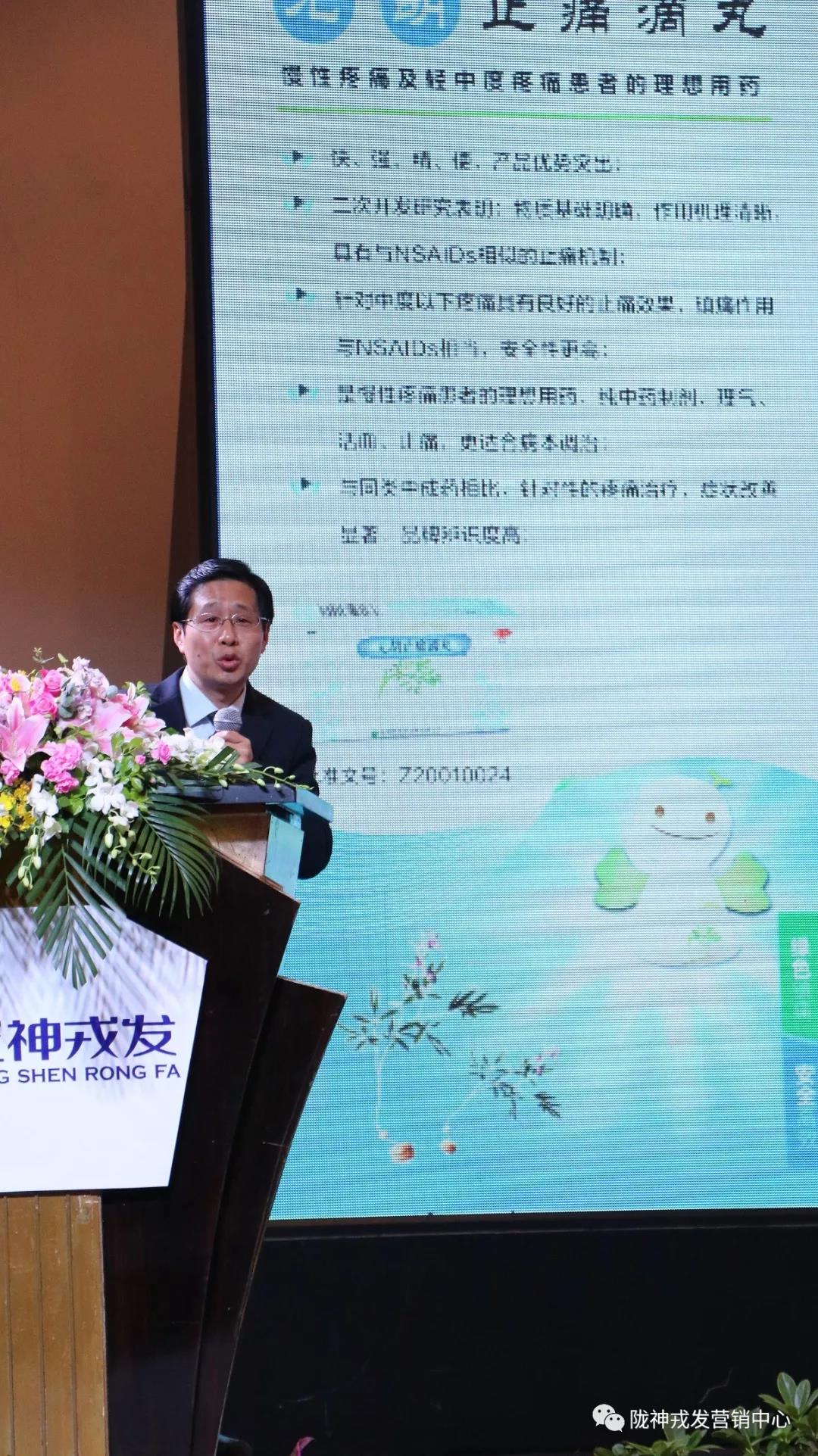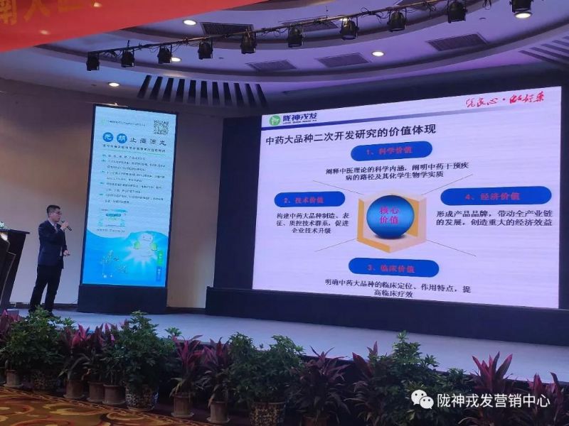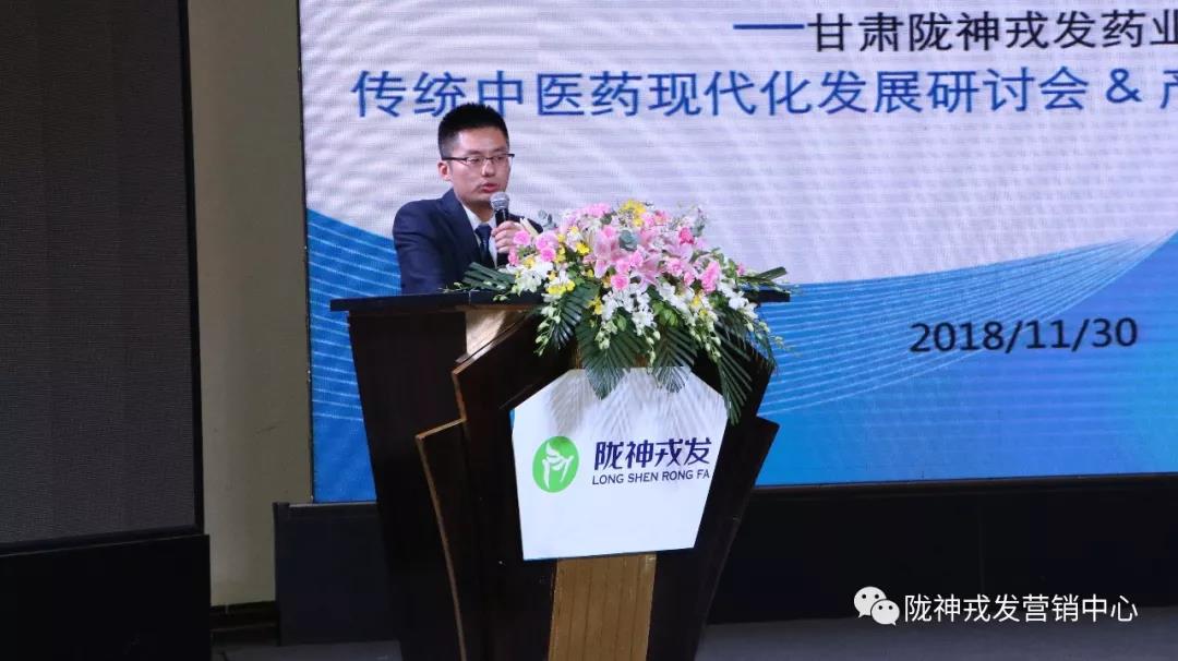 甘肅隴神戎發(fā)藥業(yè)股份有限公司副總經(jīng)理錢雙喜先生針對元胡止痛滴丸二次開發(fā)研究過程及結(jié)果向在座的專家及客戶做了介紹展示。