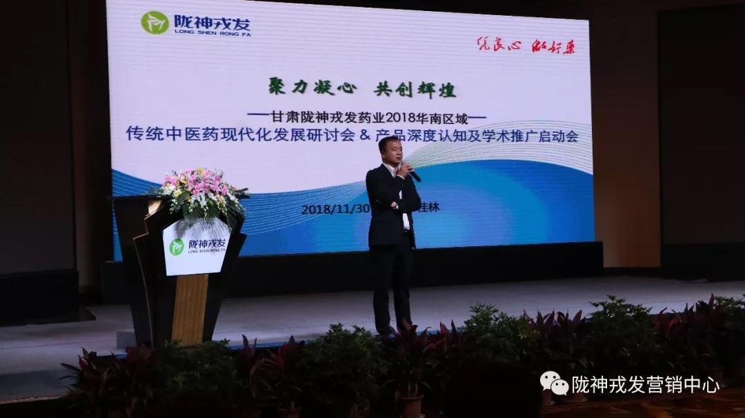 2018年11月30日,甘肅隴神戎發(fā)藥業(yè)股份有限公司在自古享有“山水甲天下”之美譽的桂林,隆重舉行了“華南大區(qū)傳統(tǒng)中醫(yī)藥現(xiàn)代化發(fā)展之路研討會暨產(chǎn)品深度認(rèn)知學(xué)術(shù)推廣啟動會。