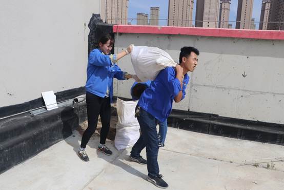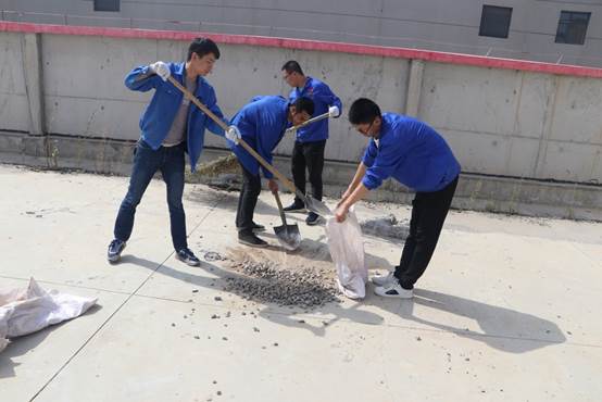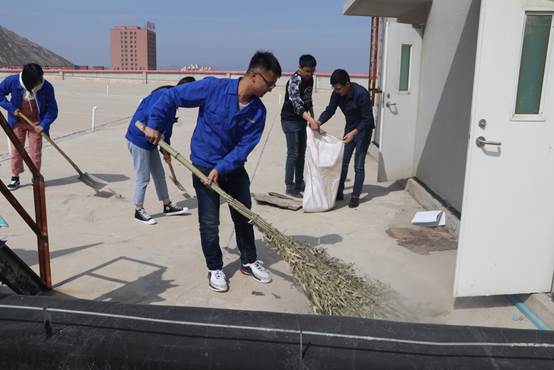 廠區(qū)樓頂?shù)哪嗤、石子、塑料等下雨天被雨水沖刷后,容易堵塞樓頂排水口,存在安全隱患。所以此次清理活動,主要針對樓頂環(huán)境衛(wèi)生、衛(wèi)生死角進(jìn)行了集中清理;顒娱_始后團(tuán)總支將已準(zhǔn)備好的鐵鍬、簸箕、掃帚等工具分發(fā)到各小組,所有人登上樓頂,發(fā)揮不怕苦、臟、累的精神,積極地清理石子、泥土、雜物等垃圾。利用廢棄的編織袋來裝運(yùn),即節(jié)省了物資,又能二次利用。