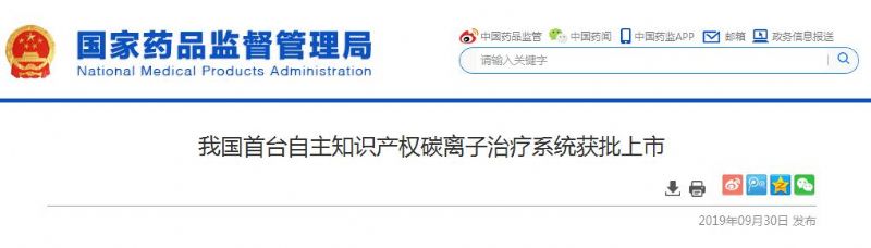2019年9月29日,國家藥品監(jiān)督管理局經(jīng)審查,批準(zhǔn)蘭州科近泰基新技術(shù)有限責(zé)任公司的“碳離子治療系統(tǒng)”醫(yī)療器械注冊。 |