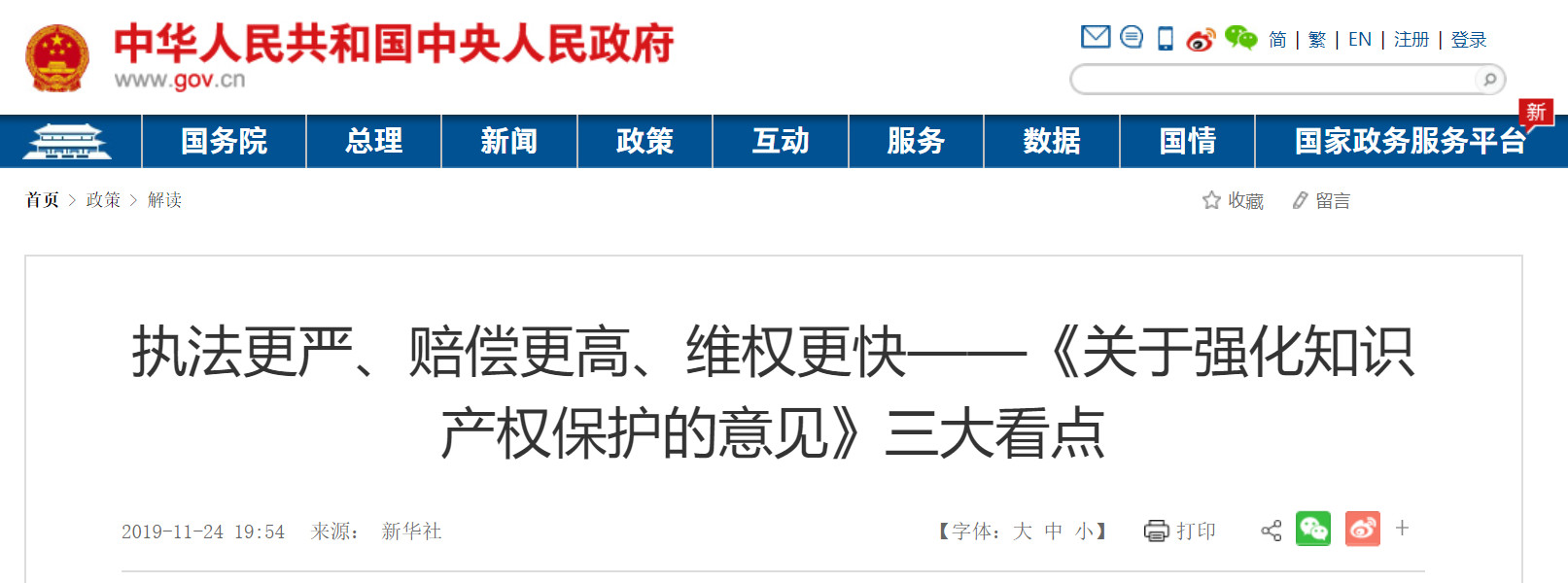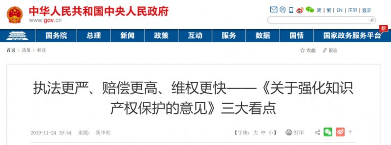 新華社北京11月24日電 題:執(zhí)法更嚴(yán)、賠償更高、維權(quán)更快——《關(guān)于強(qiáng)化知識(shí)產(chǎn)權(quán)保護(hù)的意見(jiàn)》三大看點(diǎn)