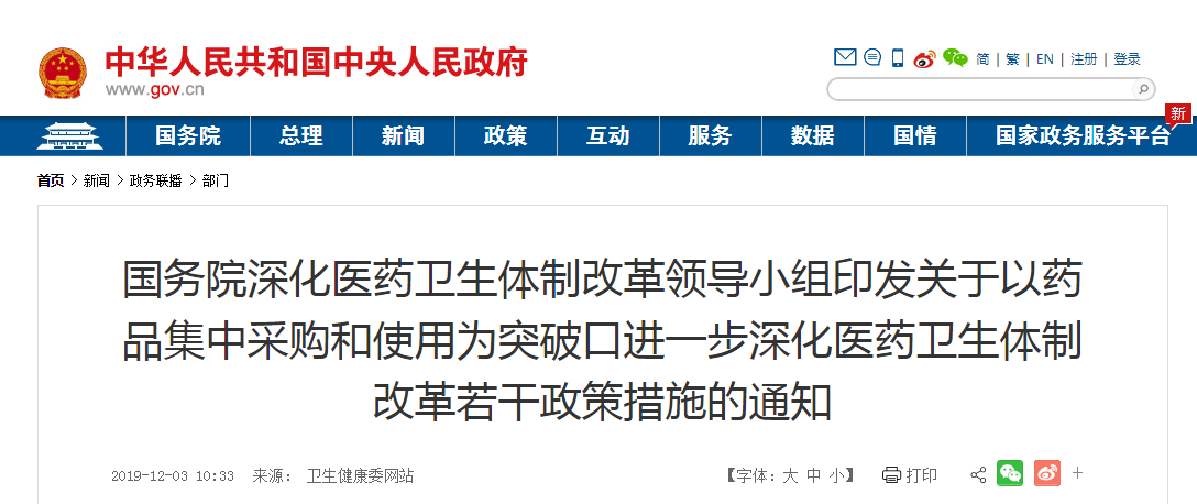 為貫徹落實黨中央、國務(wù)院關(guān)于深化醫(yī)藥衛(wèi)生體制改革的決策部署,推動各地加大力度持續(xù)深化醫(yī)療、醫(yī)保、醫(yī)藥聯(lián)動改革,經(jīng)國務(wù)院同意,現(xiàn)將《關(guān)于以藥品集中采購和使用為突破口 進(jìn)一步深化醫(yī)藥衛(wèi)生體制改革的若干政策措施》印發(fā)給你們,請結(jié)合實際認(rèn)真貫徹落實。
