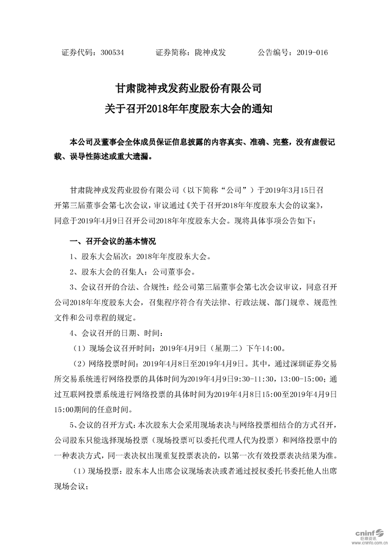 關(guān)于召開2018年年度股東大會(huì)的通知