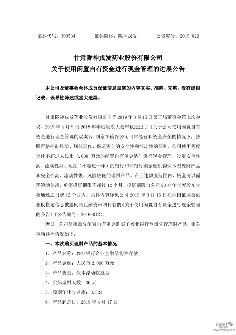 關(guān)于使用閑置自有資金進(jìn)行現(xiàn)金管理的進(jìn)展公告