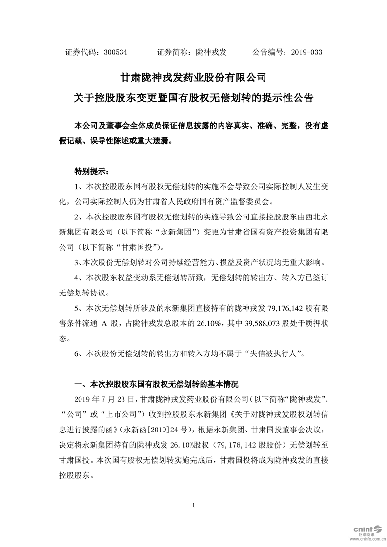 關(guān)于控股股東變更暨國有股權(quán)無償劃轉(zhuǎn)的提示性公告