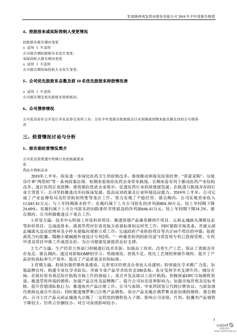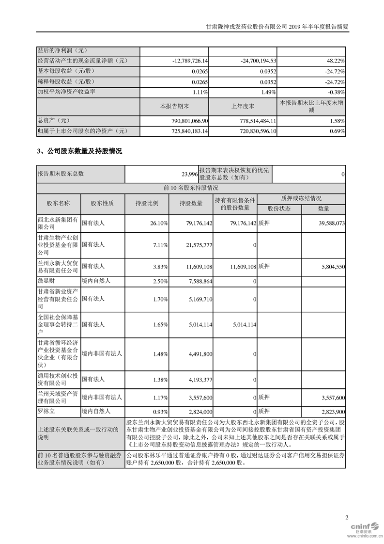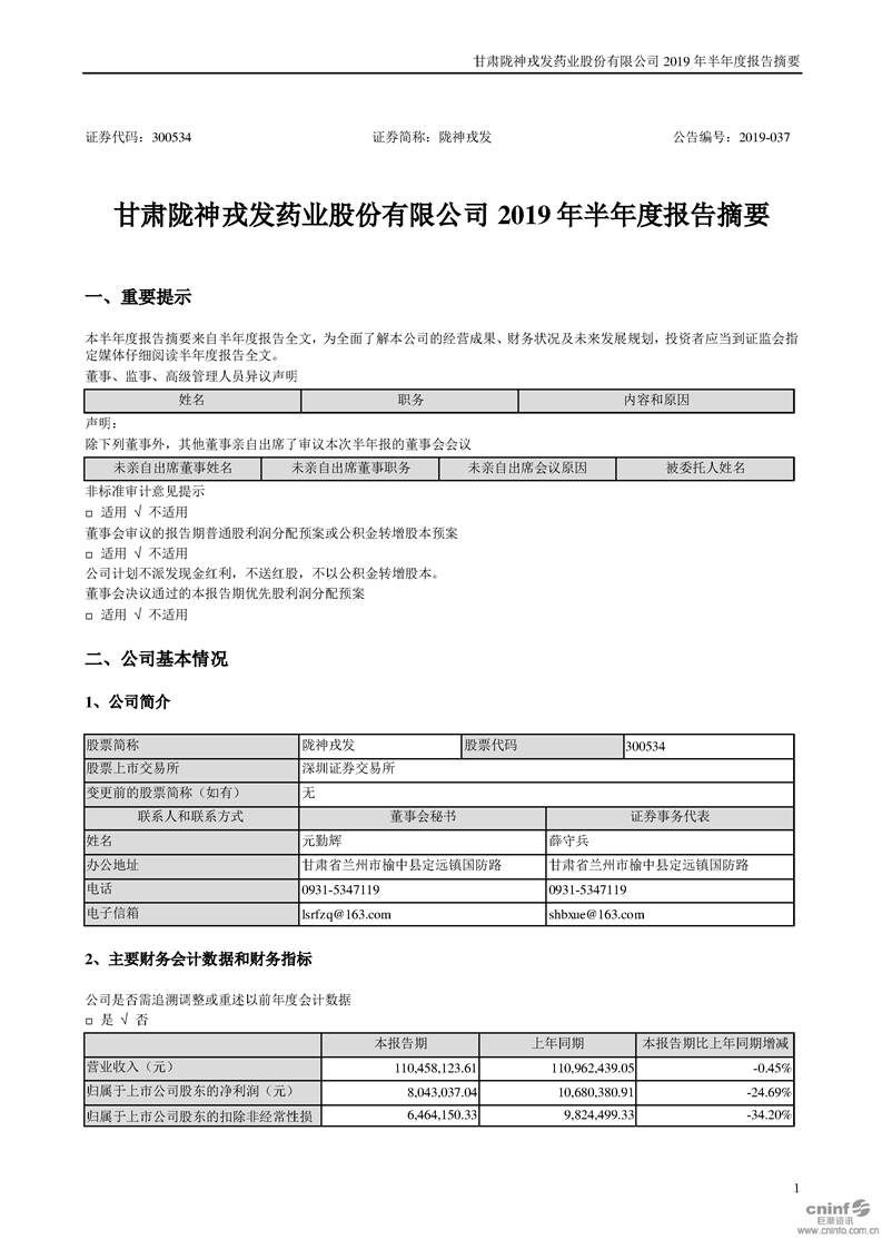 2019年半年度報告摘要