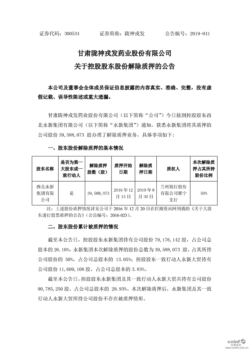關(guān)于控股股東股份解除質(zhì)押的公告