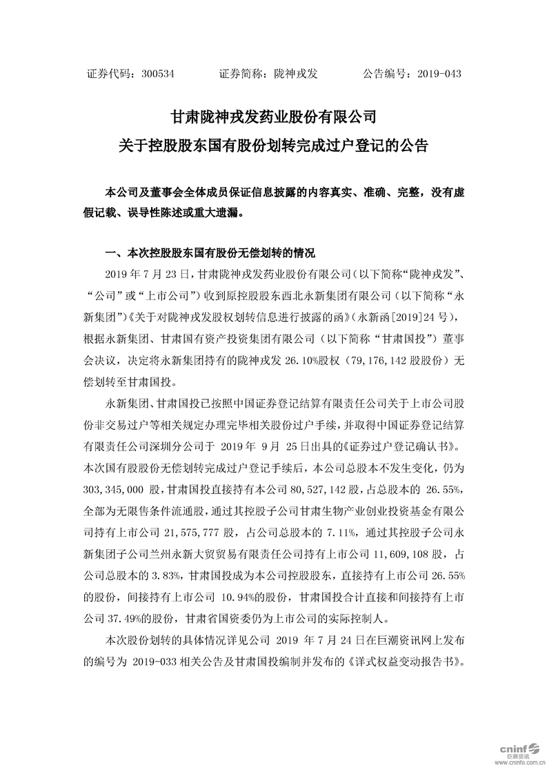 關(guān)于控股股東國有股份劃轉(zhuǎn)完成過戶登記的公告