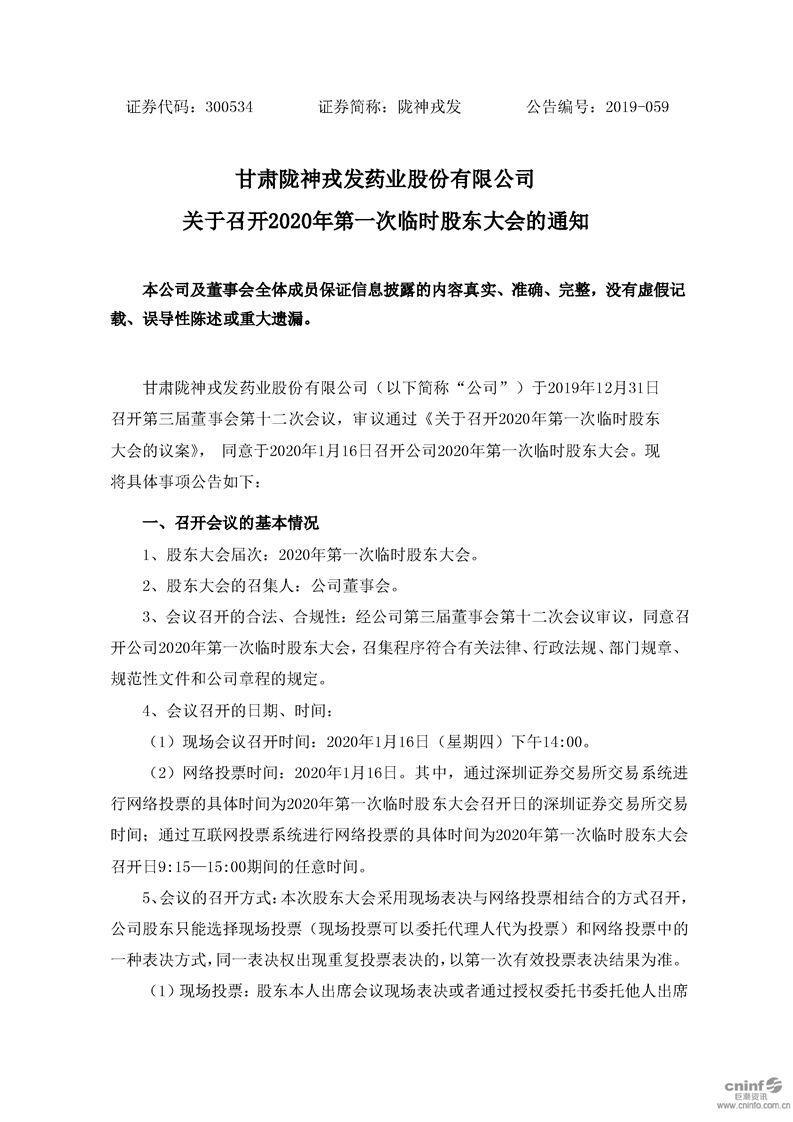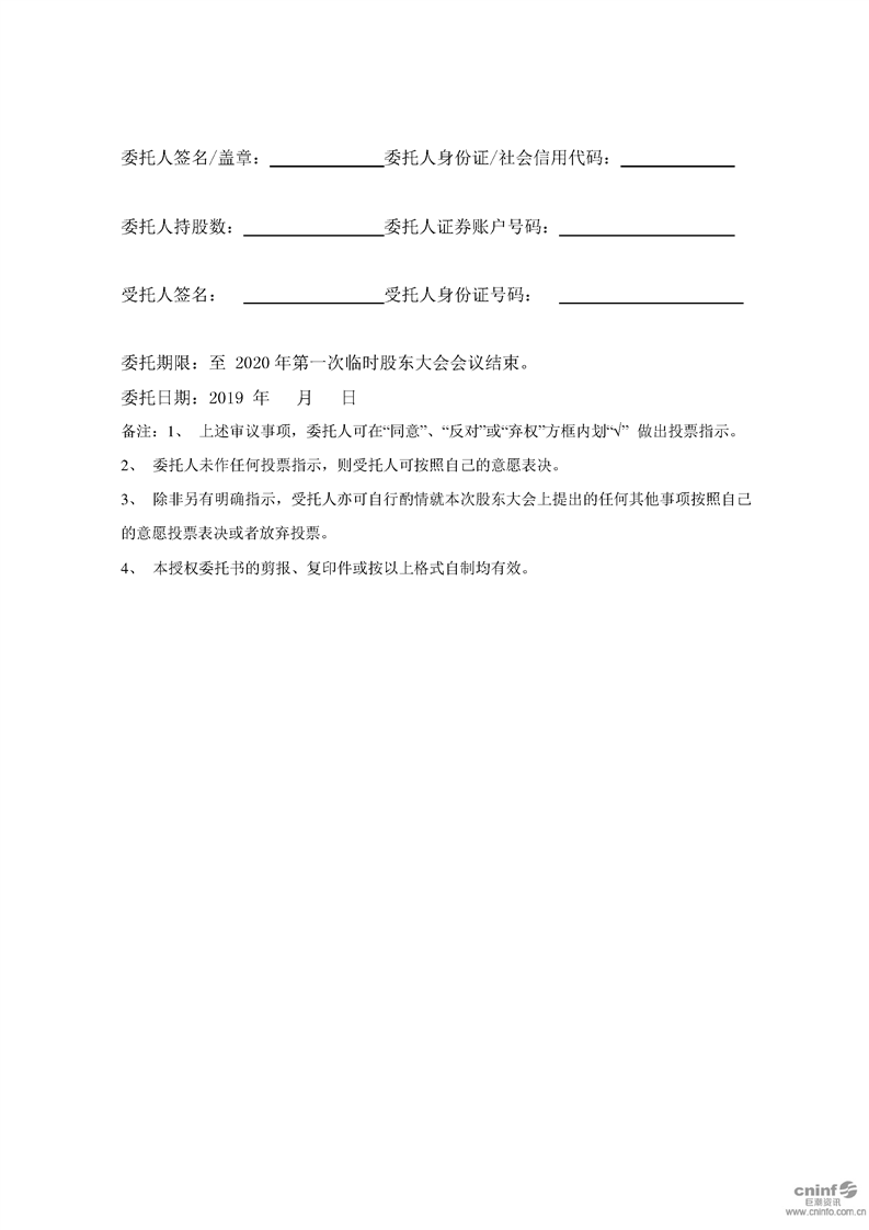 關(guān)于召開2020年第一次臨時(shí)股東大會(huì)的通知