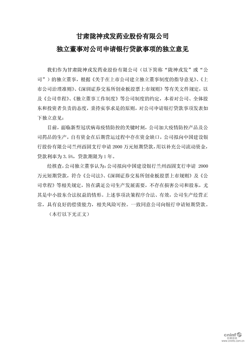 獨(dú)立董事對(duì)公司申請(qǐng)銀行貸款事項(xiàng)的獨(dú)立意見(jiàn)
