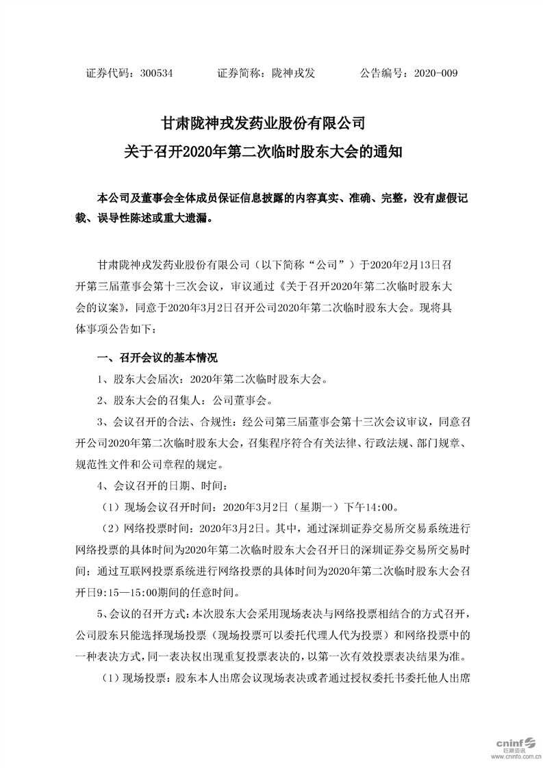 關(guān)于召開2020年第二次臨時(shí)股東大會(huì)的通知