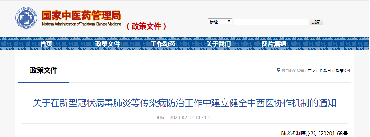 關(guān)于在新型冠狀病毒肺炎等傳染病防治工作中建立健全中西醫(yī)協(xié)作機制的通知