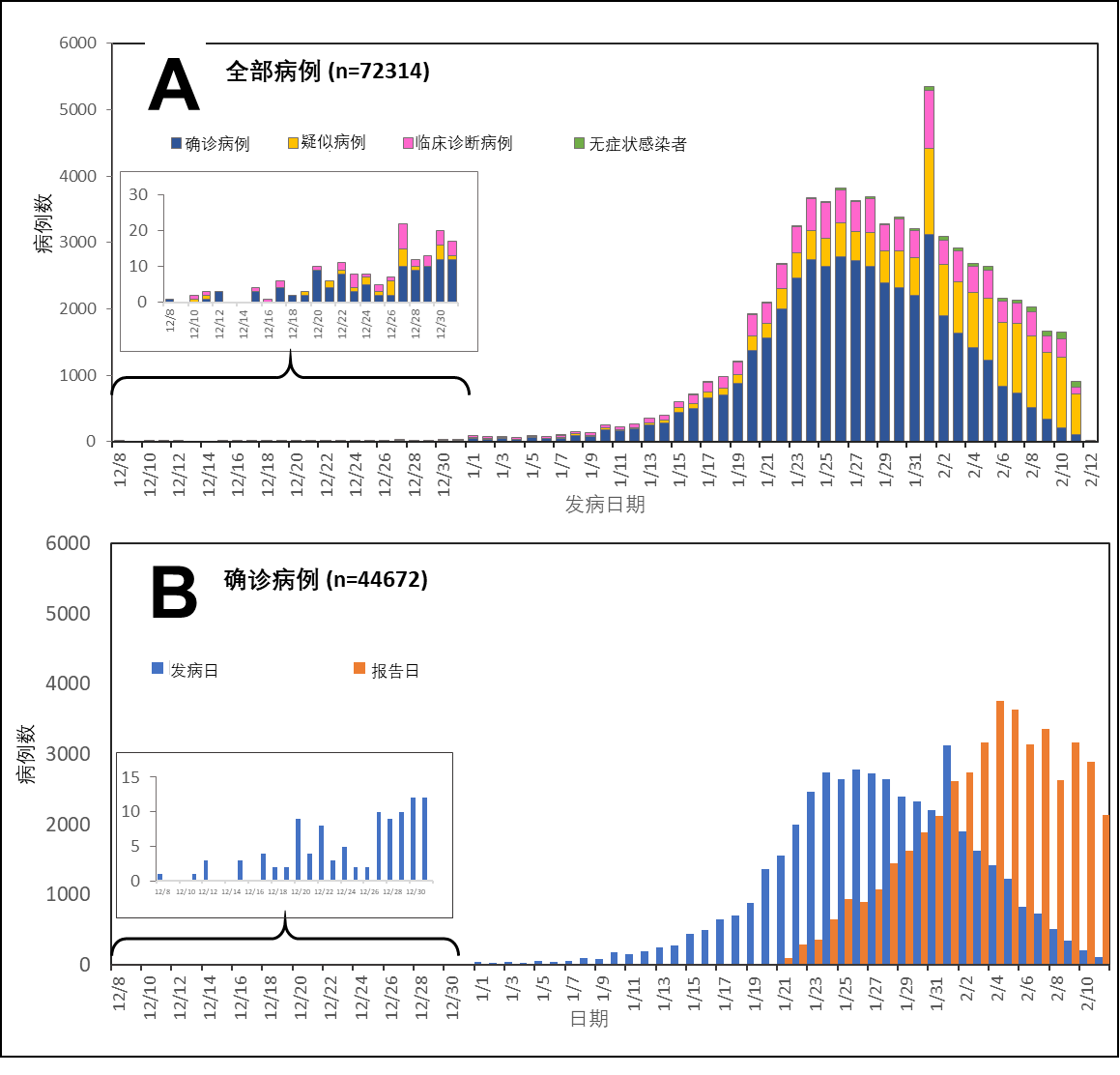 1月20日,經(jīng)國務(wù)院批準(zhǔn)同意,國家衛(wèi)健委決定將新型冠狀病毒肺炎納入法定傳染病乙類管理,但采取甲類傳染病的預(yù)防、控制措施,同時將該病納入國境衛(wèi)生檢疫法規(guī)定的檢疫傳染病管理。1月23日,武漢市疫情防控指揮部宣布全市城市公交、地鐵、輪渡、長途客運暫停運營,機(jī)場、火車站離漢通道暫時關(guān)閉。兩天后,中國政府做出了最高級別的承諾,動員一切力量遏止這一傳染病的流行。了解COVID-19傳播的流行病學(xué)特征,對于制定和實施有效的控制策略至關(guān)重要。為此,對截至2020年2月11日發(fā)現(xiàn)的所有COVID-19病例進(jìn)行了流行病學(xué)特征描述和分析。