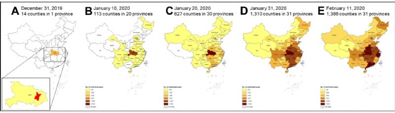 圖2 新型冠狀病毒肺炎從湖北向全國蔓延擴(kuò)散