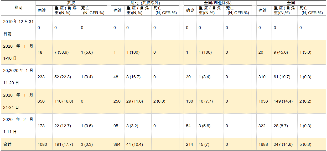 表2. 2019年12月8日-2月11日全國、湖北、武漢報告醫(yī)務(wù)人員