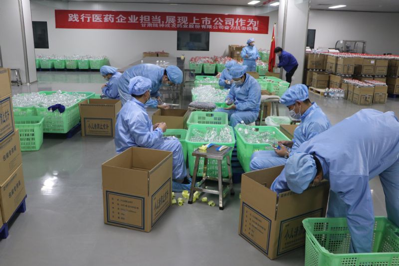 精準(zhǔn)施策護(hù)航全面復(fù)產(chǎn)。為減少人員聚集,隴神戎發(fā)嚴(yán)格執(zhí)行復(fù)工人員輪崗及倒班制度,開工以后每天兩次體溫監(jiān)測,同時(shí)加大對生產(chǎn)區(qū)的消殺頻次,對人員實(shí)行倒班制,白班從100多個(gè)職工減少到了51人,中班從30人減少到15人,夜班3人,截止2月29日,生產(chǎn)元胡止痛滴丸10836萬丸、復(fù)方丹參片800萬片、麻杏止咳膠囊100萬粒。同時(shí),根據(jù)當(dāng)前疫情防控情況市場需求,結(jié)合隴神戎發(fā)實(shí)際情況,以及隴神戎發(fā)未來發(fā)展規(guī)劃等因素,著手變更經(jīng)營范圍并修改《公司章程》,將“口罩、防護(hù)服、消毒液、測溫儀等生產(chǎn)和銷售”納入隴神戎發(fā)經(jīng)營范圍,新增日產(chǎn)能10噸75%乙醇消毒液生產(chǎn)線1條,目前已產(chǎn)75%乙醇消毒液71.6噸,已售44.35噸。
