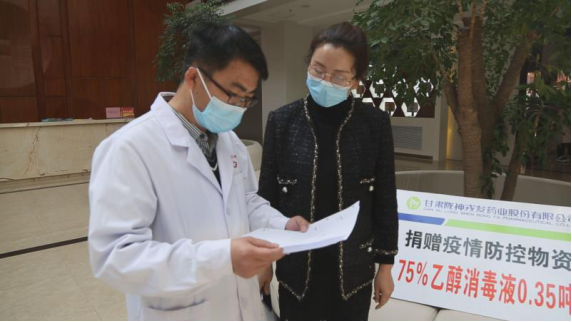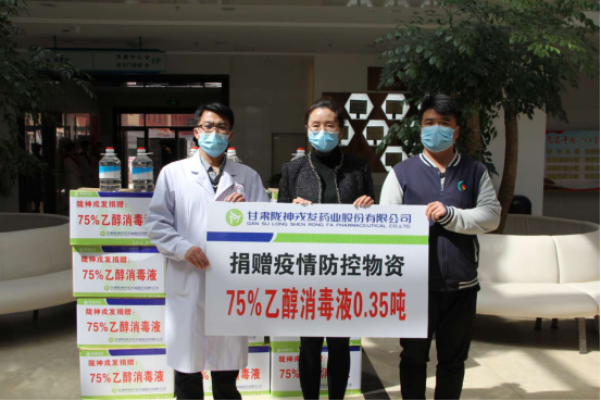 3月19日,甘肅隴神戎發(fā)藥業(yè)股份有限公司向蘭州出入境邊防檢查站捐贈75%乙醇消毒液1.3噸,向甘肅省聽力語言康復(fù)中心捐贈75%乙醇消毒液0.35噸,用于疫情防控消毒工作。