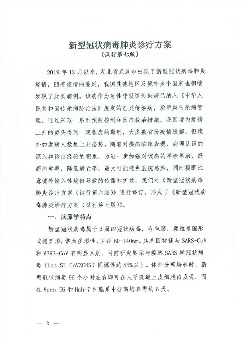 新型冠狀病毒肺炎診療方案(試行第七版)