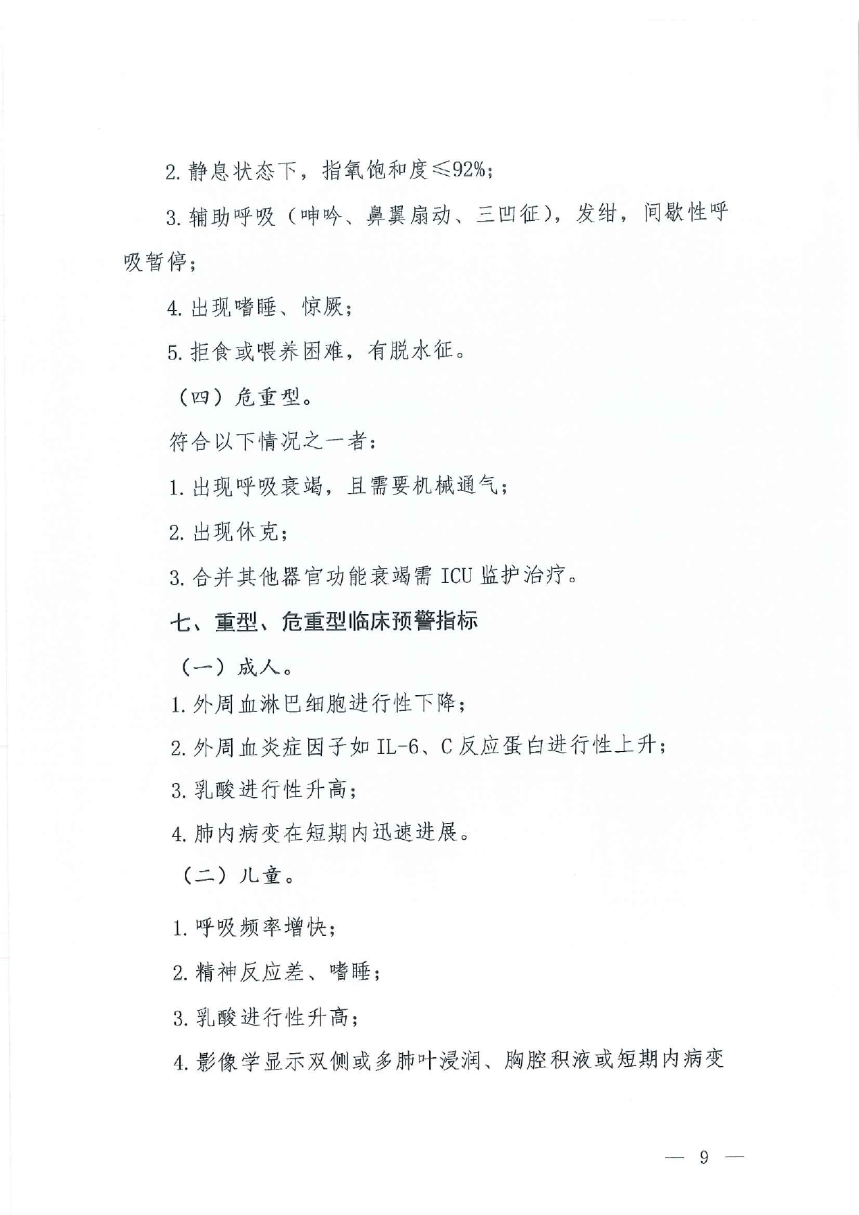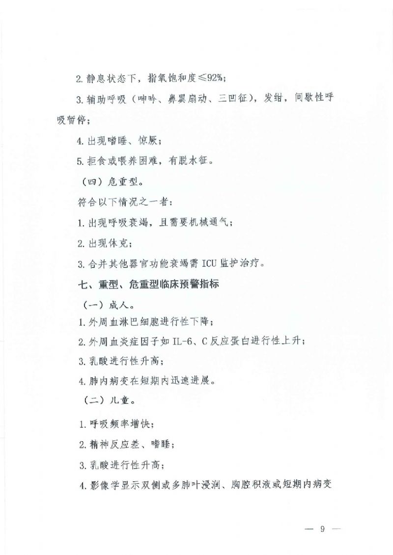 七、按照成人和兒童分別增加“重型、危重型臨床預(yù)警指標(biāo)”