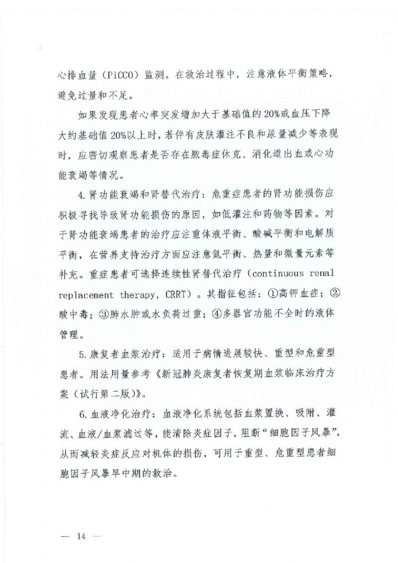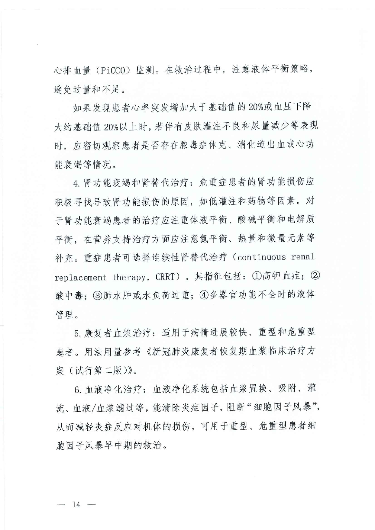 5.對重型、危重型患者存在細(xì)胞因子風(fēng)暴的,為清除炎癥因子,阻斷“細(xì)胞因子風(fēng)暴”,增加“血液凈化治療”。