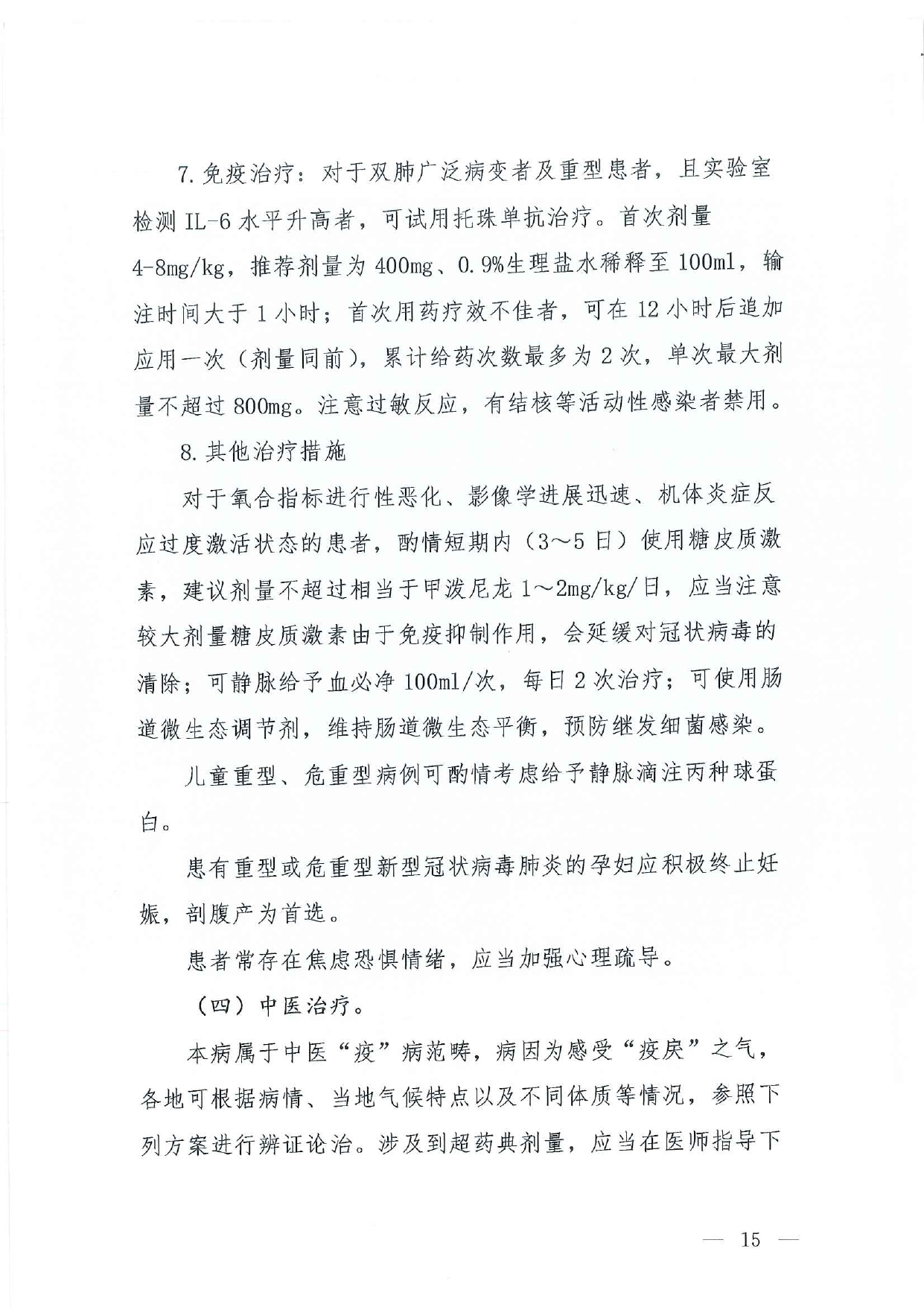 為進(jìn)一步做好新型冠狀病毒肺炎病例診斷和醫(yī)療救治工作,我們組織專家在對前期醫(yī)療救治工作進(jìn)行分析、研判、總結(jié)的基礎(chǔ)上,對診療方案進(jìn)行修訂,形成了《新型冠狀病毒肺炎診療方案(試行第七版)》,F(xiàn)印發(fā)給你們,請參照執(zhí)行。各有關(guān)醫(yī)療機(jī)構(gòu)要在醫(yī)療救治工作中積極發(fā)揮中醫(yī)藥作用,加強(qiáng)中西醫(yī)結(jié)合,完善中西醫(yī)聯(lián)合會診制度,促進(jìn)醫(yī)療救治取得良好效果。
