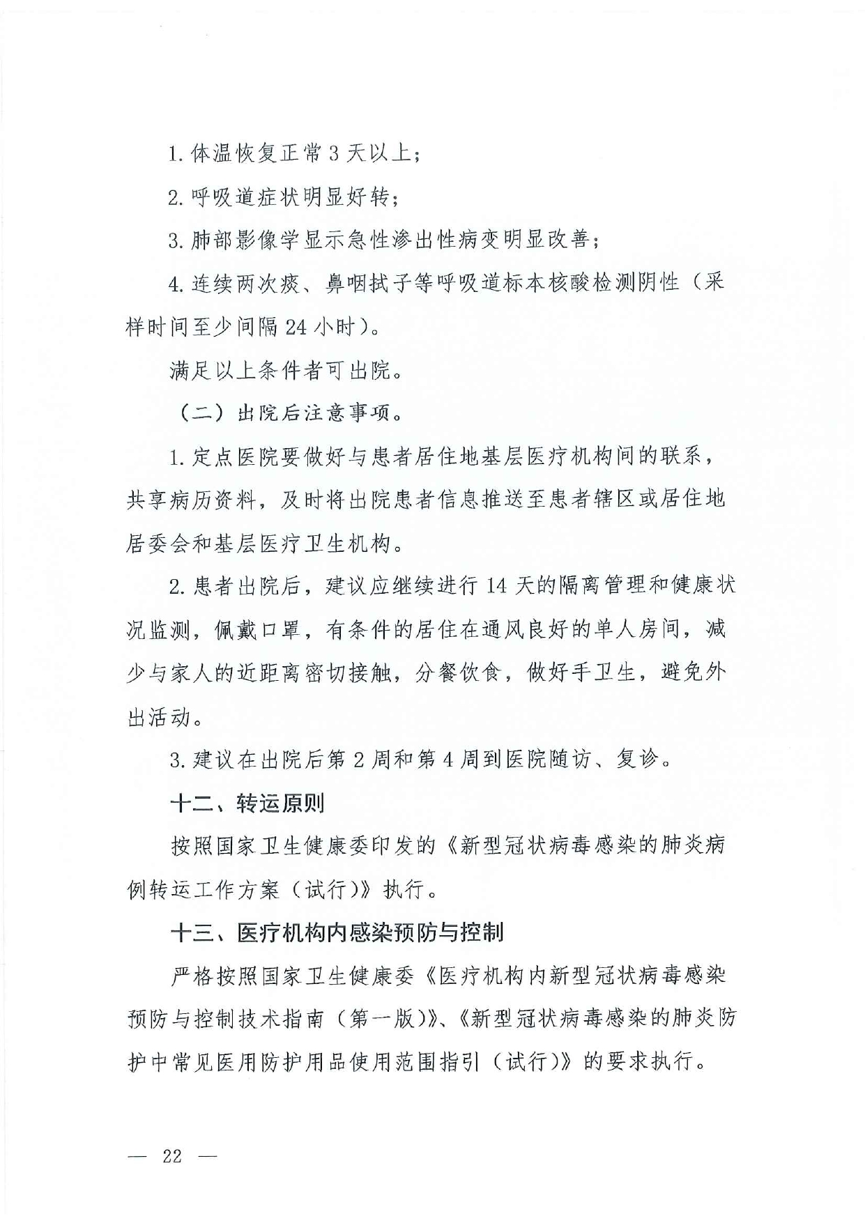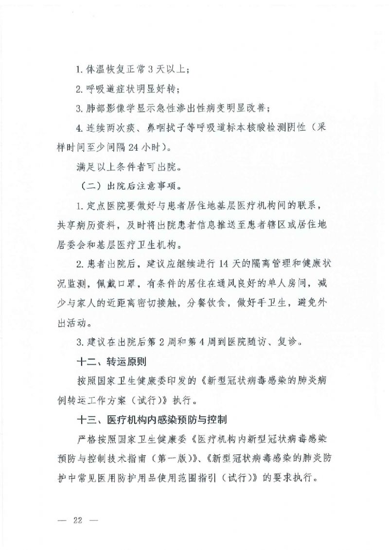 (二)出院后注意事項(xiàng)。鑒于有少數(shù)出院患者出現(xiàn)核酸檢測復(fù)檢陽性的問題,為加強(qiáng)對出院患者的健康管理和隔離,將“應(yīng)繼續(xù)進(jìn)行14天自我健康狀況監(jiān)測”改為“應(yīng)繼續(xù)進(jìn)行14天的隔離管理和健康狀況監(jiān)測”,同時要求佩戴口罩,有條件的居住在通風(fēng)良好的單人房間,減少與家人的近距離密切接觸,分餐飲食,做好手衛(wèi)生,避免外出活動。