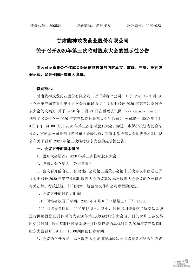 關(guān)于召開2020年第三次臨時(shí)股東大會的提示性公告