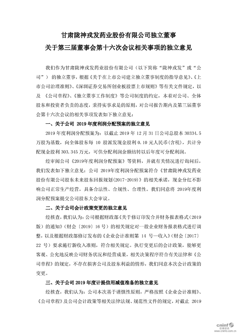 獨(dú)立董事關(guān)于第三屆董事會(huì)第十六次會(huì)議相關(guān)事項(xiàng)的獨(dú)立意見(jiàn)