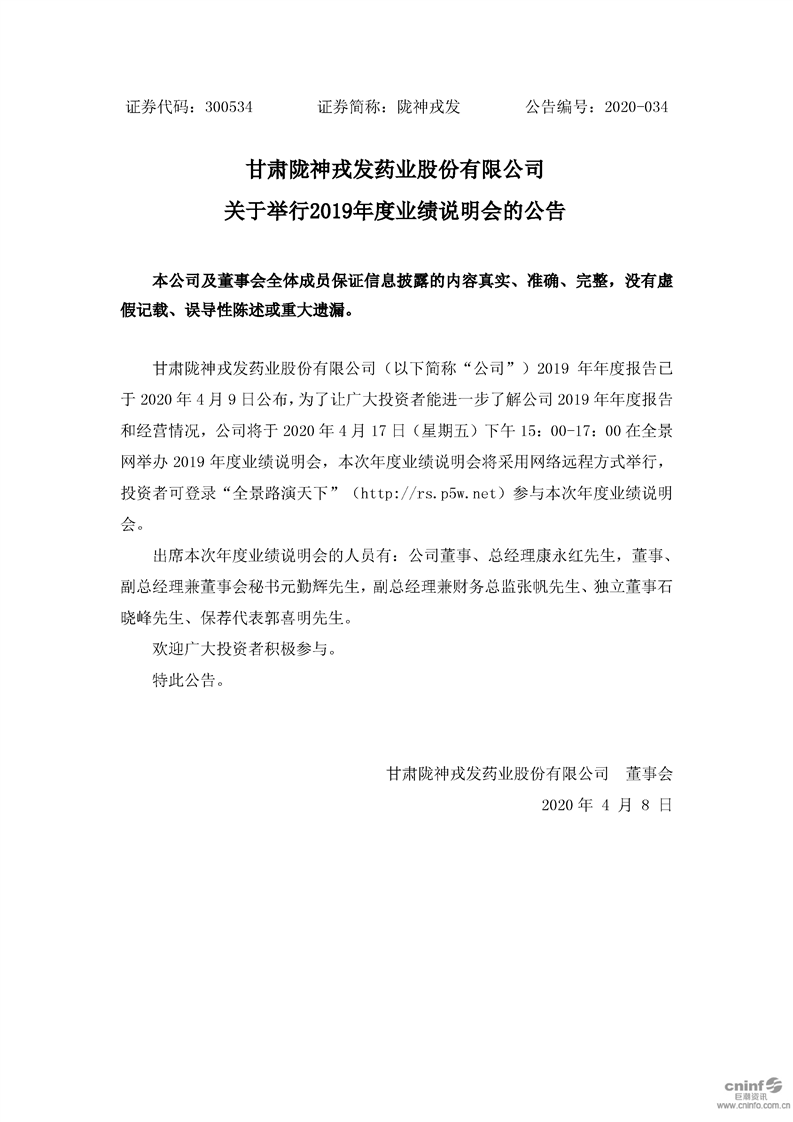 關(guān)于舉行2019年度業(yè)績(jī)說明會(huì)的公告