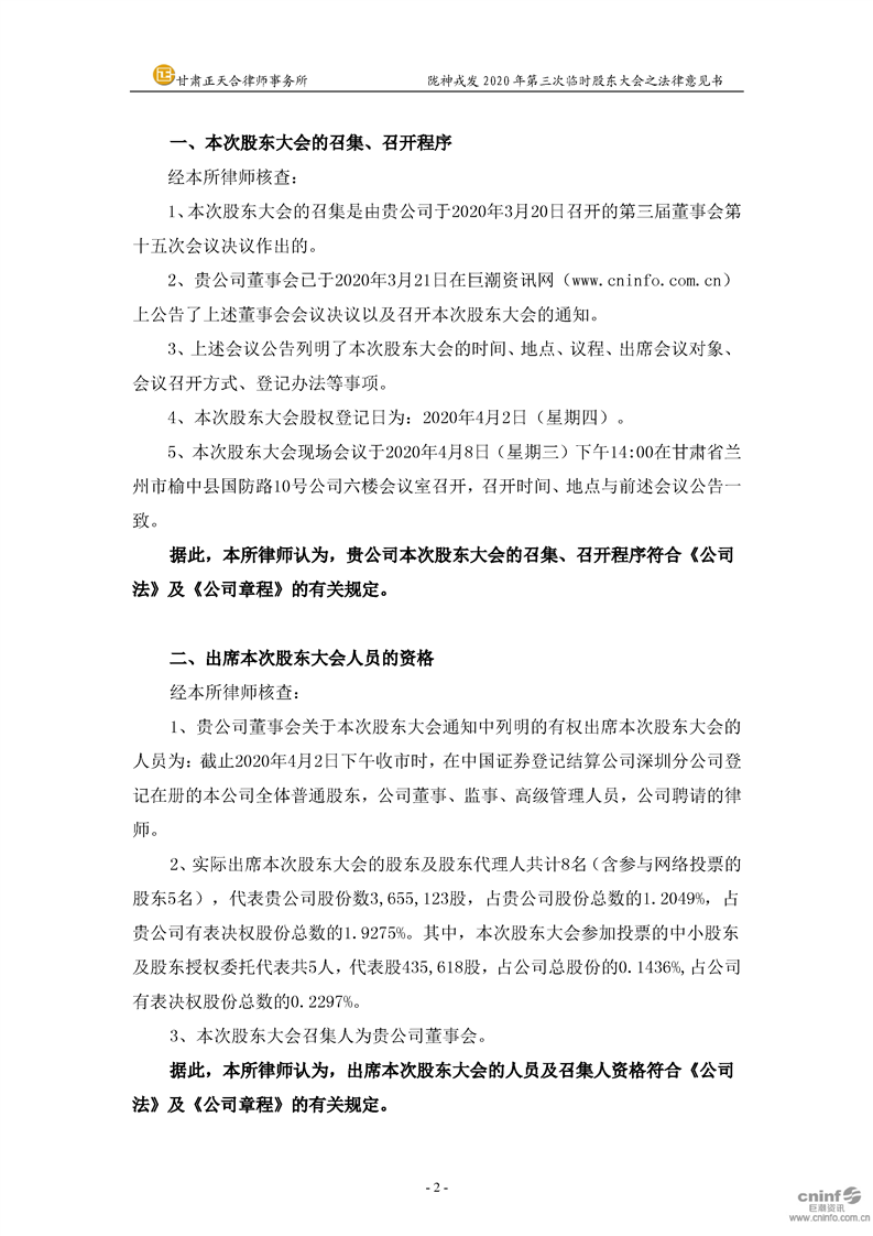 2020年第三次臨時(shí)股東大會(huì)之法律意見(jiàn)書(shū)