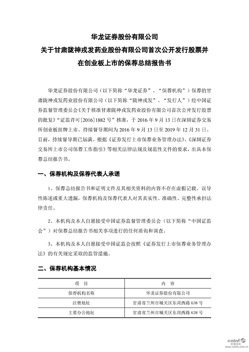 華龍證券股份有限公司關(guān)于公司首次公開發(fā)行股票并在創(chuàng)業(yè)板上市的保薦總結(jié)報(bào)告書