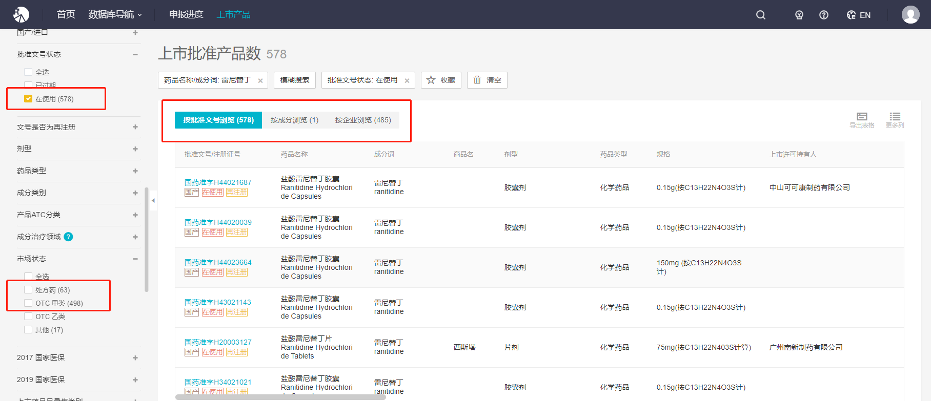 根據(jù) Insight 數(shù)據(jù)庫信息,雷尼替丁最早于 1985 年就在國內(nèi)上市,目前國內(nèi)有 743 個(gè)批準(zhǔn)文號,在使用文號 589 個(gè),485 個(gè)廠家生產(chǎn)該品種。