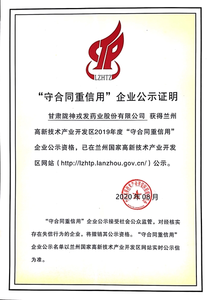 隴神戎發(fā)獲評蘭州高新區(qū)“守合同重信用”企業(yè)