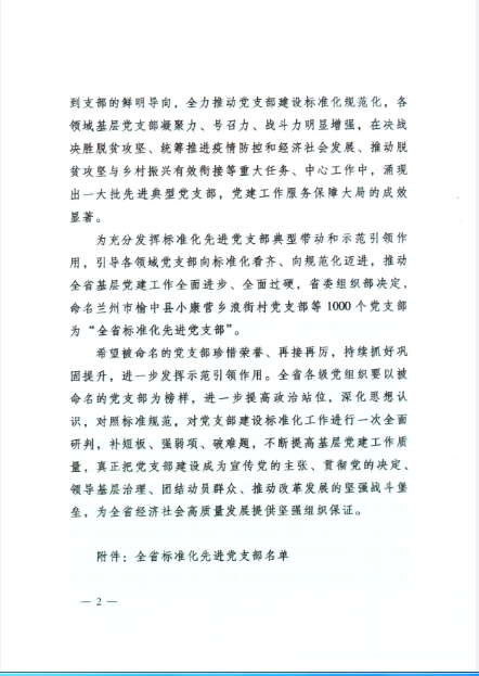 近日,甘肅省委組織部印發(fā)《關(guān)于命名1000個全省標(biāo)準(zhǔn)化先進(jìn)黨支部的通知》,對在決戰(zhàn)決勝脫貧攻堅、統(tǒng)籌推進(jìn)疫情防控和經(jīng)濟(jì)社會發(fā)展、推動脫貧攻堅與鄉(xiāng)村振興有效銜接等重大任務(wù)、中心工作中涌現(xiàn)出的1000個標(biāo)準(zhǔn)化先進(jìn)黨支部進(jìn)行了命名。甘肅隴神戎發(fā)藥業(yè)股份有限公司所屬生產(chǎn)黨支部光榮上榜。