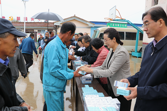 在捐贈儀式上,公司黨委委員楊俊萍代表公司做了企業(yè)及產(chǎn)品介紹并現(xiàn)場發(fā)放藥品。公司控股子公司三元藥業(yè)副總經(jīng)理付樹紅向群眾詳細的講解了產(chǎn)品主治功能和服用劑量。
