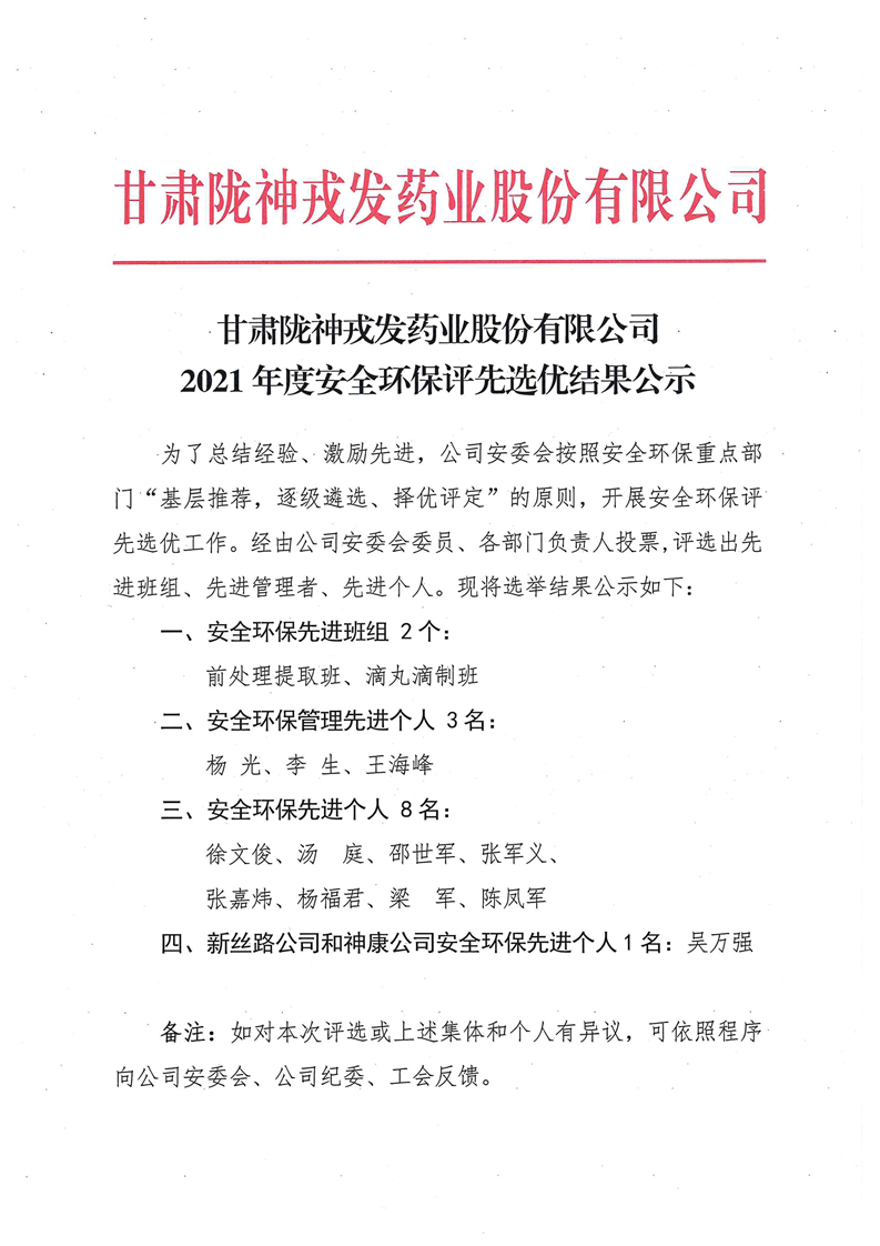 2021年度安全環(huán)保評(píng)先選優(yōu)結(jié)果公示