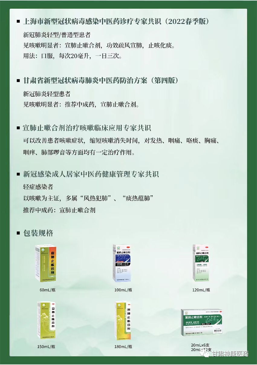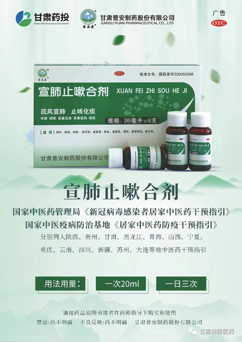 國家中醫(yī)藥管理局、國家中醫(yī)疫病防治基地等先后發(fā)布居家中醫(yī)藥干預指引、專家共識。全國各。ㄊ校┫群蟀l(fā)布“新冠感染”居家治療用藥指南,甘肅藥業(yè)集團宣肺止嗽合劑獲多方權威機構推薦。多地政府機構、醫(yī)療衛(wèi)生機構紛紛緊急訂購宣肺止嗽合劑,用以保障當地醫(yī)療衛(wèi)生機構分級診療用藥及政府藥品備用。甘肅藥業(yè)集團全力組織藥品生產企業(yè)普安制藥開足馬力生產,盡最大努力保障群眾用藥需求。