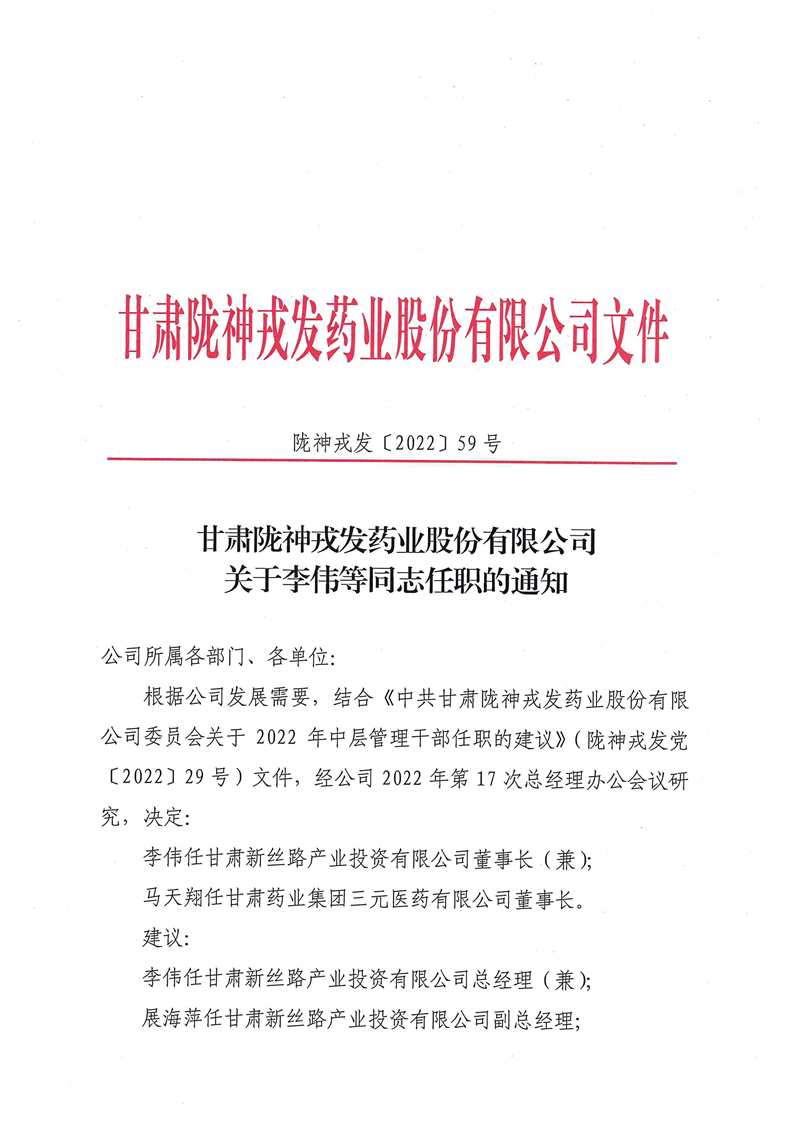 關(guān)于李偉等同志任職的通知