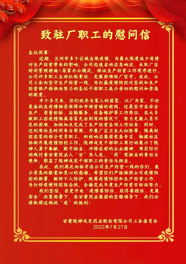 致駐廠(chǎng)職工的慰問(wèn)信