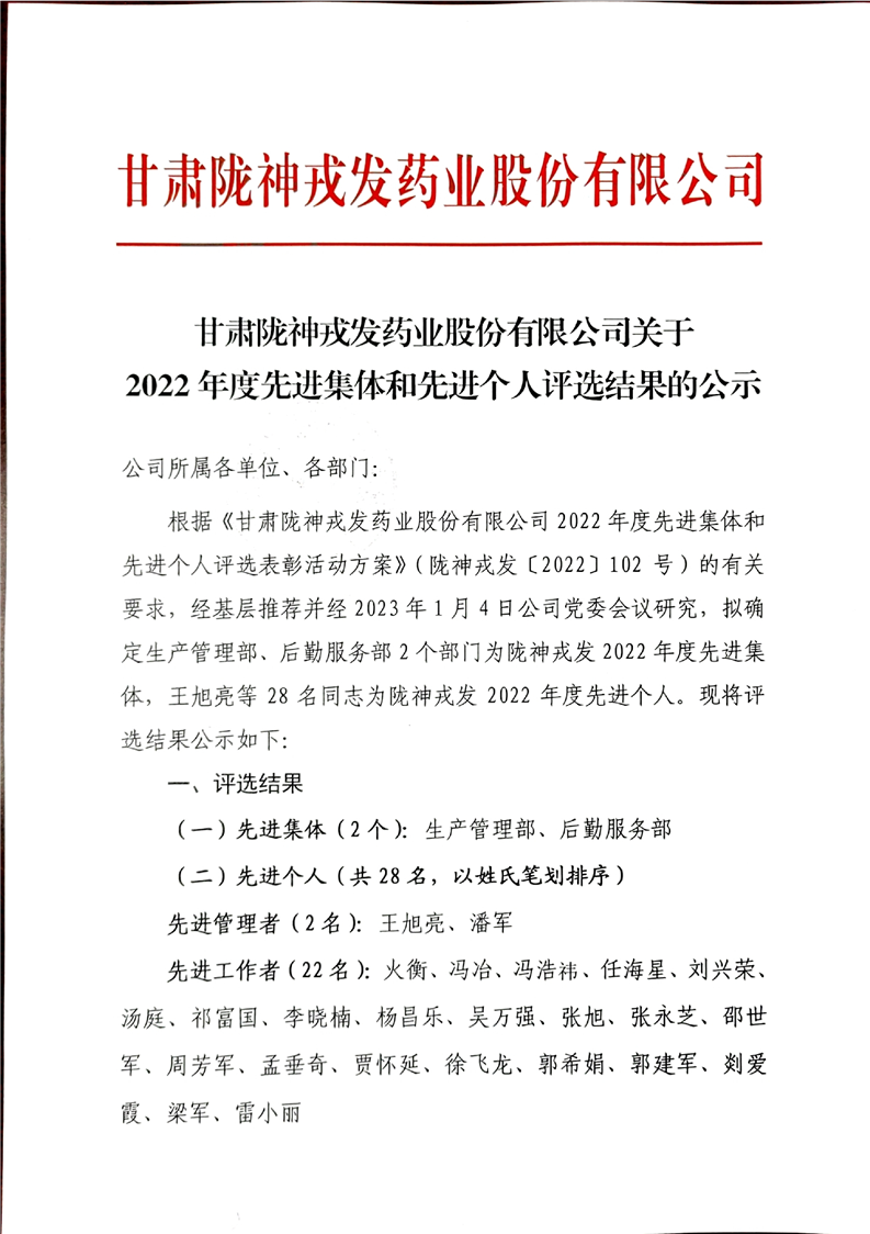 隴神戎發(fā)2022年度先進集體和先進個人評選結(jié)果的公示