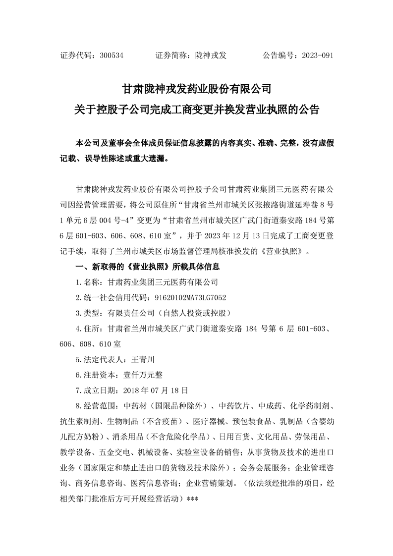 關(guān)于控股子公司完成工商變更并換發(fā)營(yíng)業(yè)執(zhí)照的公告