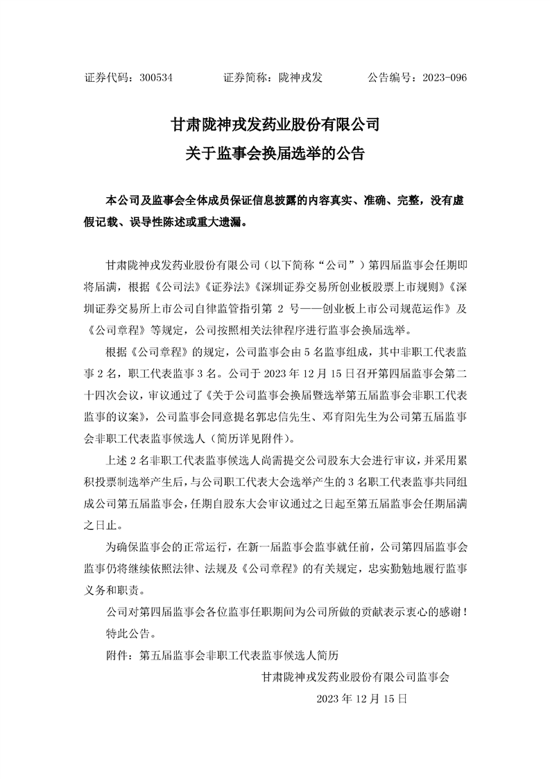 關(guān)于監(jiān)事會(huì)換屆選舉的公告