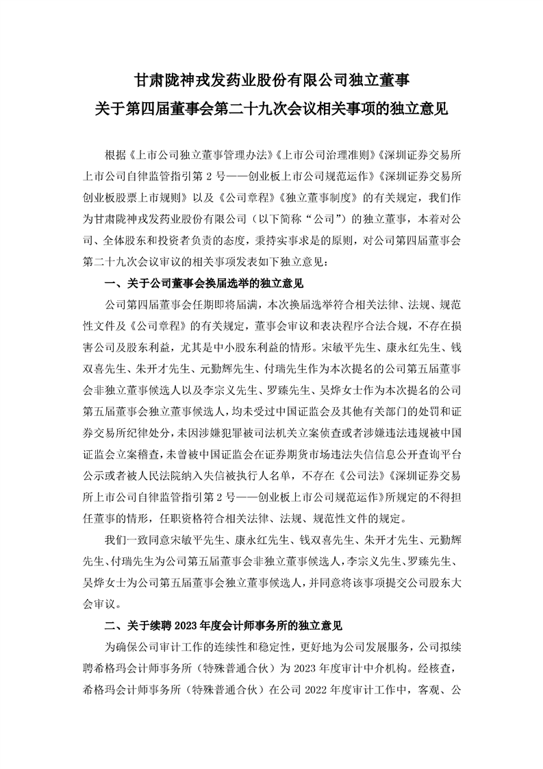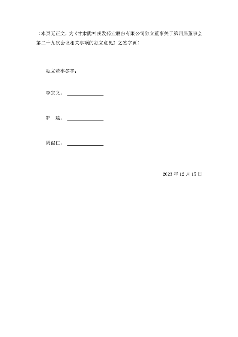 獨立董事關(guān)于第四屆董事會第二十九次會議相關(guān)事項的獨立意見