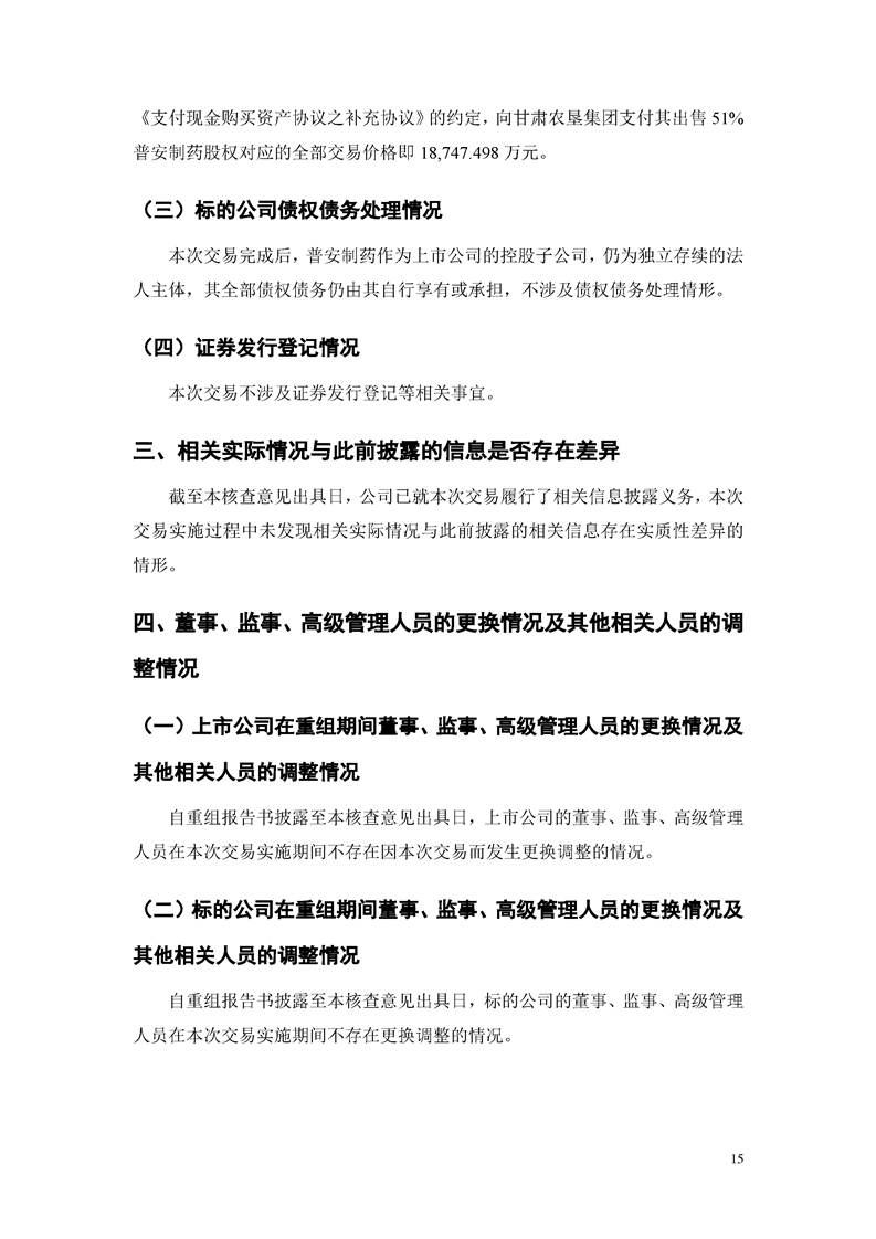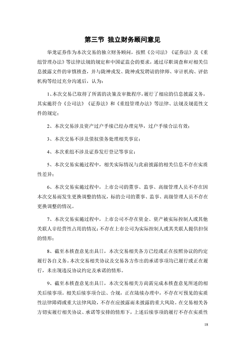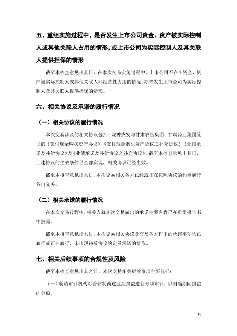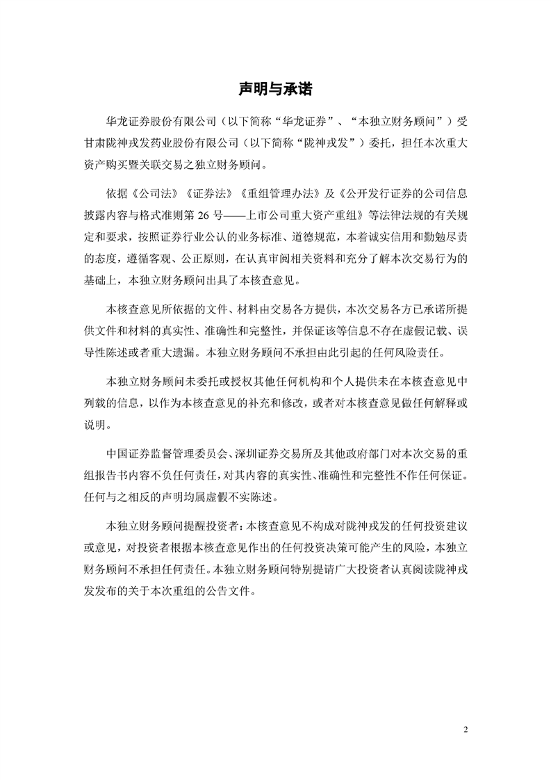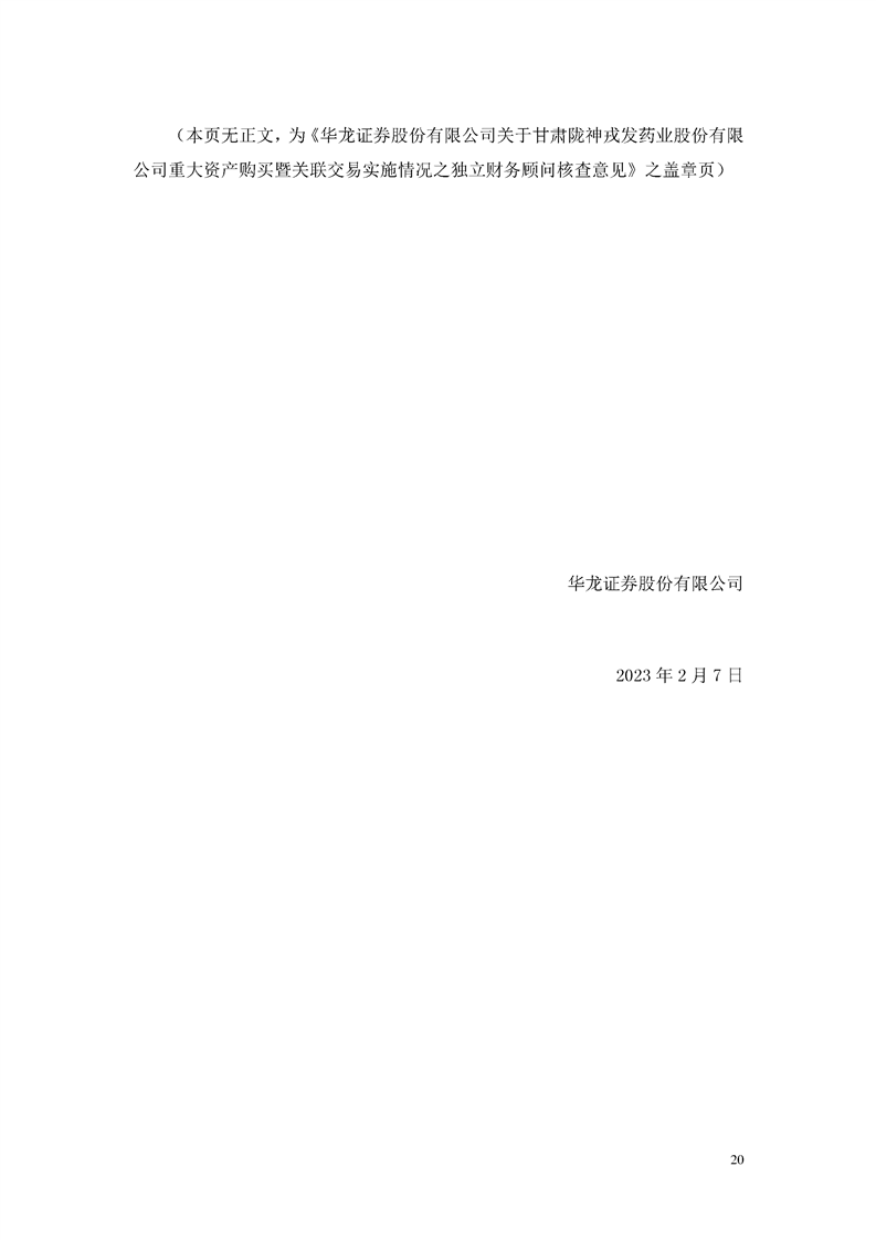 華龍證券股份有限公司關(guān)于甘肅隴神戎發(fā)藥業(yè)股份有限公司重大資產(chǎn)購買暨關(guān)聯(lián)交易實施情況之獨立財務(wù)顧問核查意見