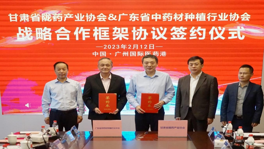 凝心聚力謀發(fā)展,踔厲奮發(fā)創(chuàng)未來。2月12日,隴藥&南藥首次在穗交流活動暨甘藥集團健康科技(廣州)有限公司揭牌儀式在廣州國際醫(yī)藥港成功舉行;顒佑筛拭C藥業(yè)集團主辦,特邀廣東省政府機構、甘肅省人民政府駐廣辦、廣東省中藥材種植行業(yè)協(xié)會、廣東省甘肅商會、廣東海王集團、廣州華盛醫(yī)藥、廣州國際醫(yī)藥港有限公司等領導和南方醫(yī)科大學、廣州中醫(yī)藥大學專家教授參加。