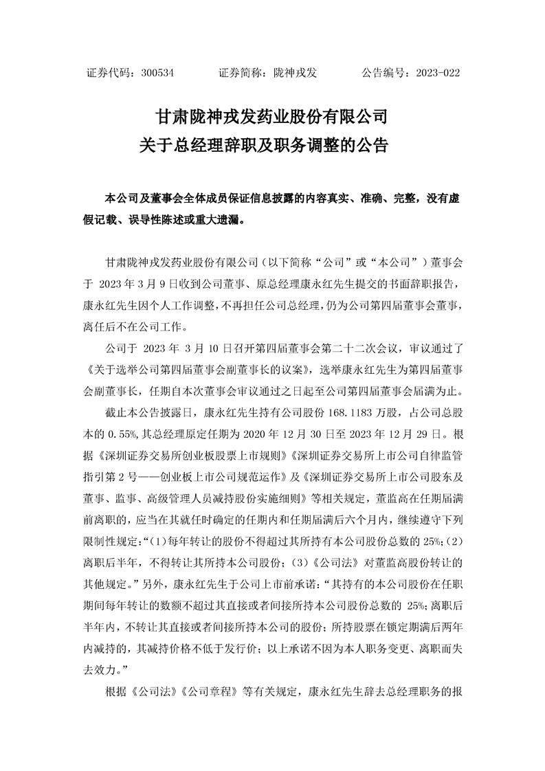關(guān)于總經(jīng)理辭職及職務(wù)調(diào)整的公告
