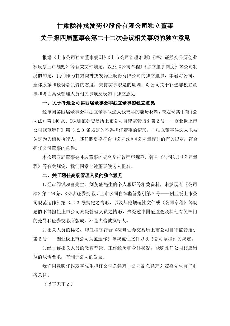 獨(dú)立董事關(guān)于第四屆董事會第二十二次會議相關(guān)事項(xiàng)的獨(dú)立意見