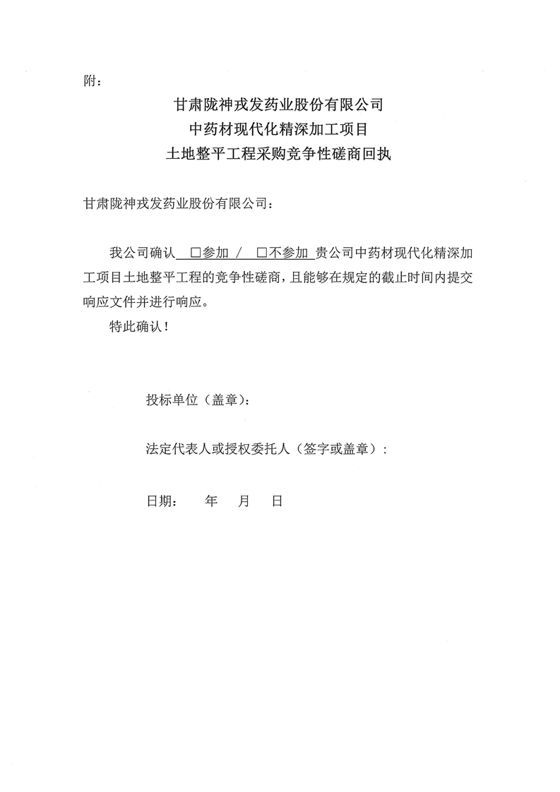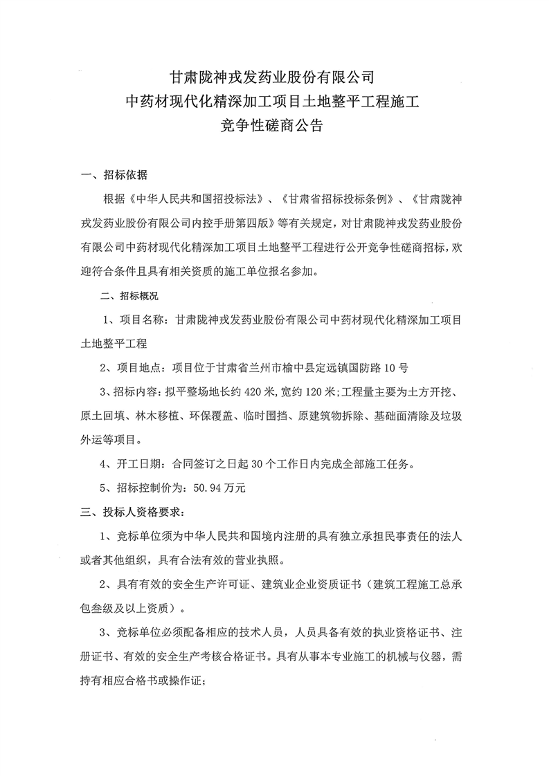 甘肅隴神戎發(fā)藥業(yè)股份有限公司中藥材現(xiàn)代化精深加工項(xiàng)目土地整平工程施工競(jìng)爭(zhēng)性磋商公告