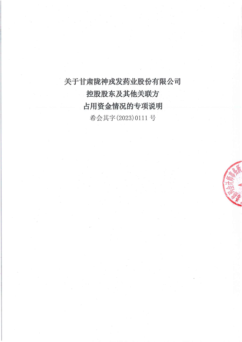 控股股東及其它關(guān)聯(lián)方資金占用情況的專項(xiàng)說明